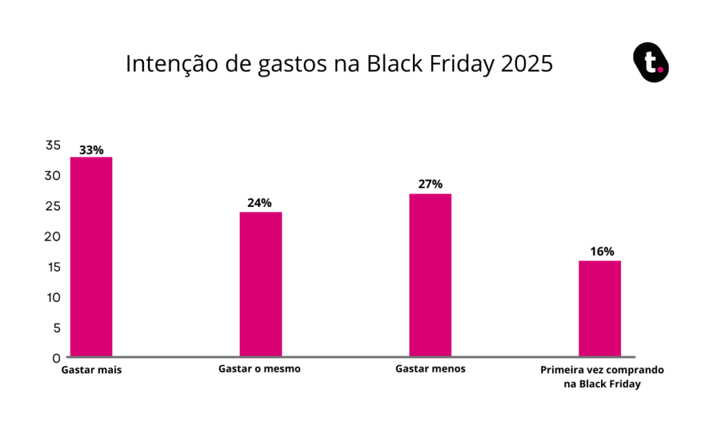Segundo a pesquisa Datatudo, 33% dos entrevistados afirmaram que pretendem gastar mais este ano do que gastaram na Black Friday de 2024.