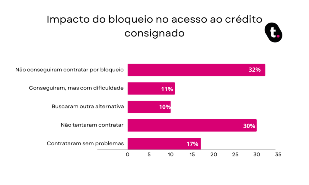 Pesquisa feita aqui no blog meutudo aponta que 32% dos beneficiários do INSS não conseguiram contratar empréstimo consignado devido ao bloqueio do benefício.